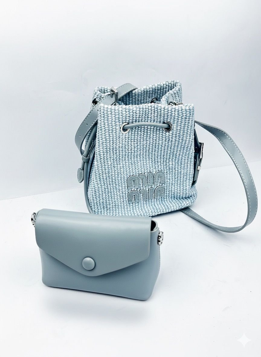 SkyWeave Bucket is a refined statement of modern elegance and everyday practicality. Crafted with a textured woven body in soft sky-blue tones and finished with smooth leather accents, it reflects a balance of innovation and craftsmanship. The structured bucket silhouette offers versatility, while the adjustable strap ensures comfort for daily wear. Designed for confident, forward-thinking individuals, this piece represents timeless design elevated by thoughtful detail and premium materials.