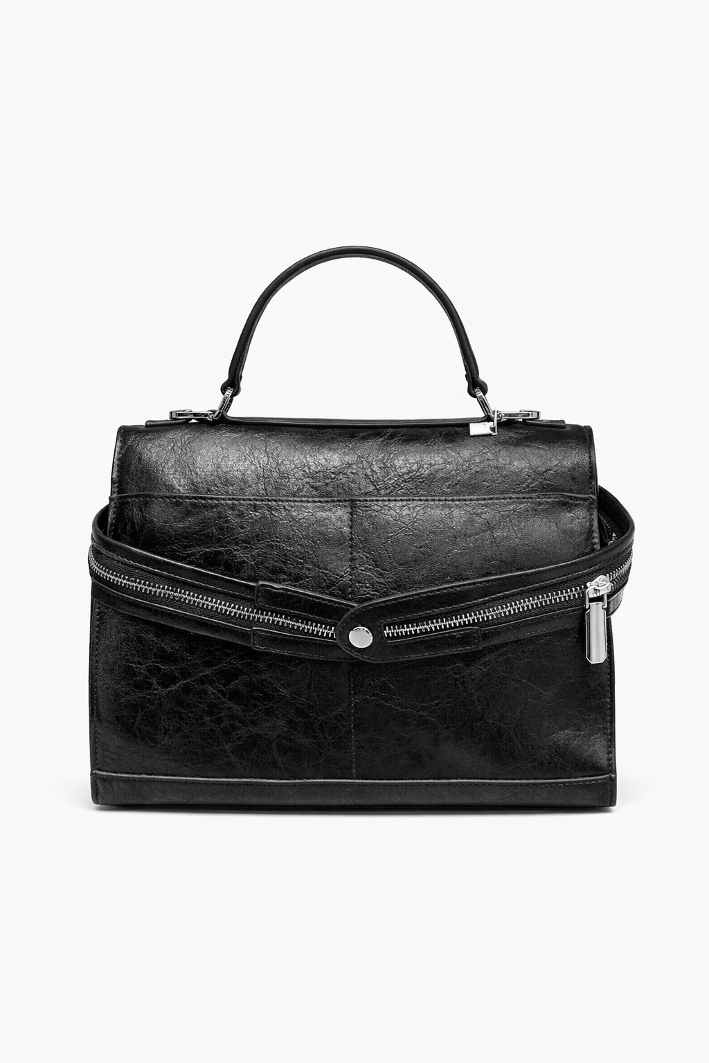 Chic top-handle handbag with a stylish front zipper design and premium textured leather. Offers a roomy interior, secure closure, and elegant look for modern women who love fashion and function.